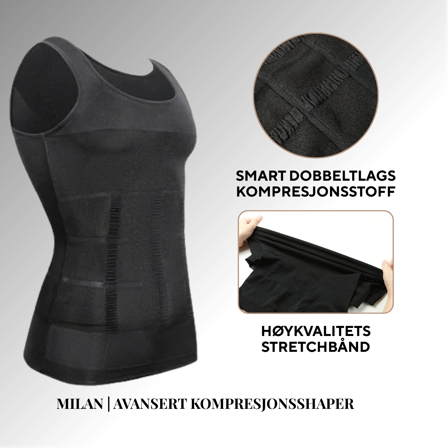 Milan | Avansert Kompresjons-Shaper er laget med dobbeltlags kompresjonsstoff som støtter kjernen og former kroppen synlig. De målrettede kompresjonssonene hjelper med å stramme magen og gir umiddelbart en fastere profil.