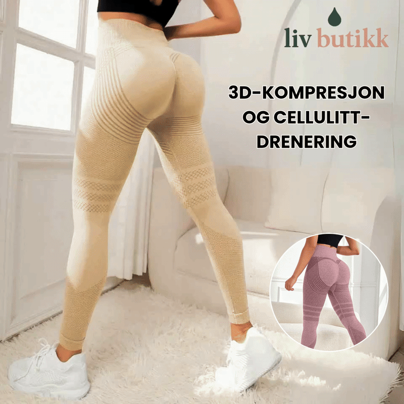 Vår anti-cellulitt-leggings stimulerer blodsirkulasjonen, øker forbrenningen av kalorier, og kombinerer 3D-drenering, lett kompresjon og en flatterende push-up-effekt – for glattere hud og en vakrere, formet silhuett.