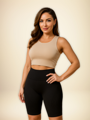 Laget av pustende, ultramykt stretchstoff som tilpasser seg kroppen din uten anstrengelse. Mens du beveger deg fritt og komfortabelt, hjelper shortleggingen deg med å brenne ekstra kalorier og støtter deg i å nå målet ditt – en glatt, stram hud hele dagen.